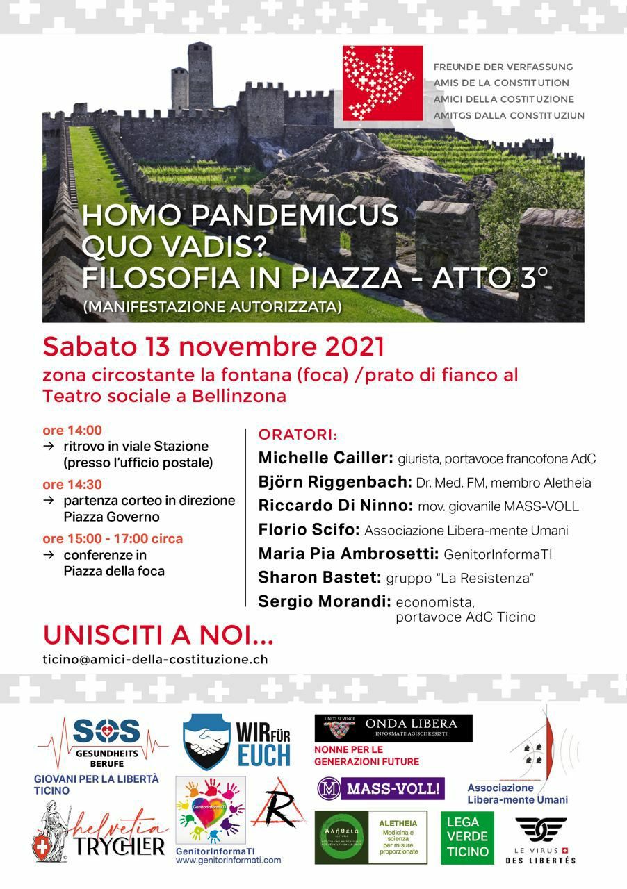 Il 28 novembre, però, ci sarà con il referendum una nuova possibilità di contribuire a cambiare le cose, un’occasione concreta che deve essere sfruttata. Se ancora una volta non lo si farà, se non si porrà alcun argine alla deriva diabolica e antiumana in atto e al sistematico abbattimento delle radici su cui questo paese in particolare si fonda, così ben rappresentate dai qui presenti Trychler e dall’Inno svizzero che in svariate occasioni è stato intonato, la valanga che si è formata tra Davos e Ginevra presto o tardi rischierà di travolgere tutti.